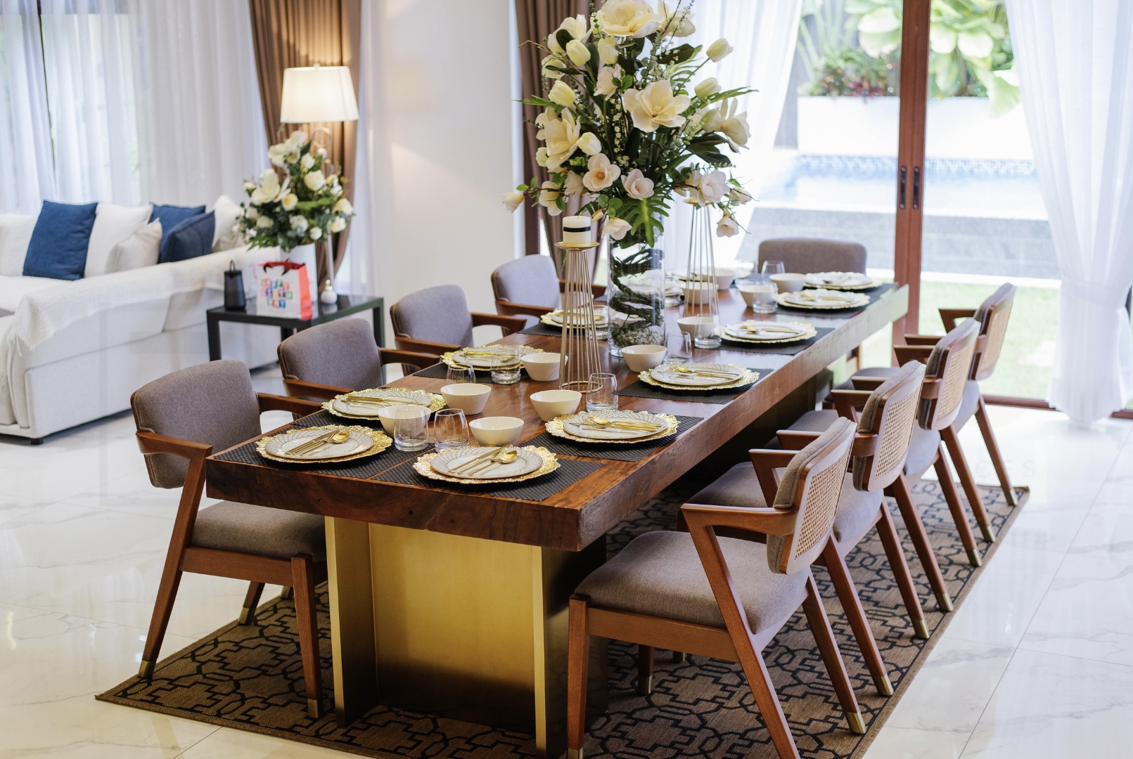 Items Not Included: Heirloom dining table, Living room center table, One 85” TV, Three artworks, Delonghi coffee maker